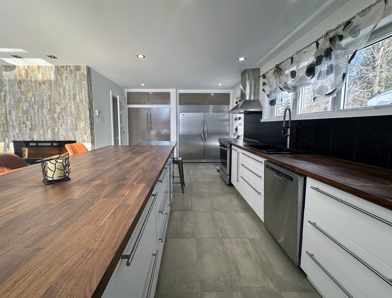 Hiking or Snowshoeing trails start directly from the property. P’tit Train du Nord - a 234 km bike trail and multi-use pathway is accessible just over the next hill. Swimming, Paddle- boarding are accessible within 5 minutes and the Ski slopes of Saint-Sauveur are a mere 12 minutes away.