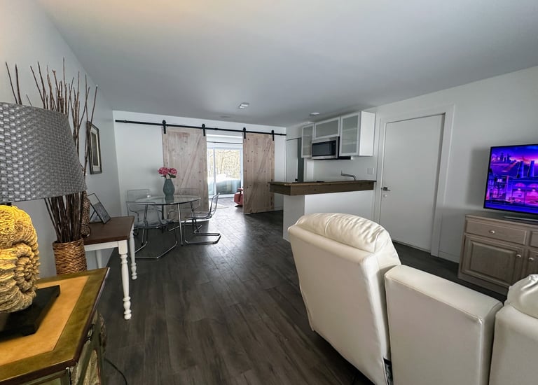 A studio designed for occupants with reduced mobility - one bedroom, one full bathroom with kitchenette. Also ideal as office or therapy suite.